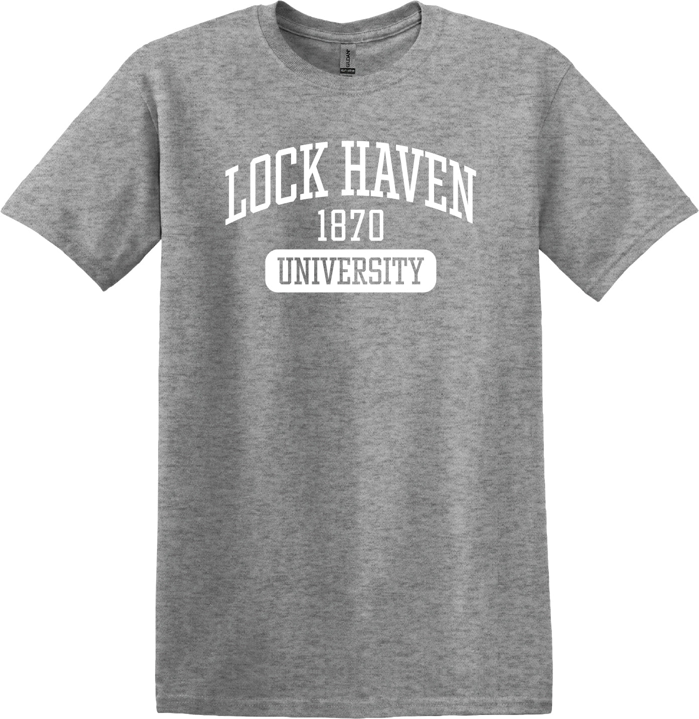 Lock Haven University T-Shirt in Black, Graphite Heather and Maroon.